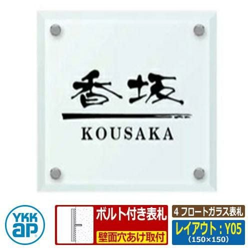 表札 ガラス 4 フロートガラス表札 レイアウト:Y05 文字色:黒 サイズ:W150×H150×t10mm