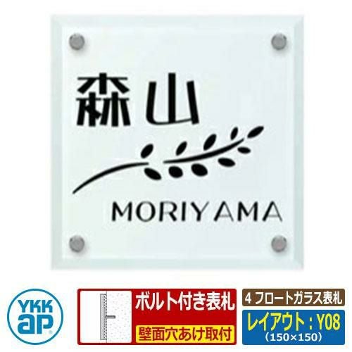 表札 ガラス 4 フロートガラス表札 レイアウト:Y08 文字色:黒 サイズ:W150×H150×t10mm