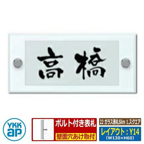 セット内容 ■22 ガラス表札Slim 1.スクエア レイアウト:Y14 文字色:黒サイズ:W130×H60×t10mm 品番:KYG3-1-Y14
