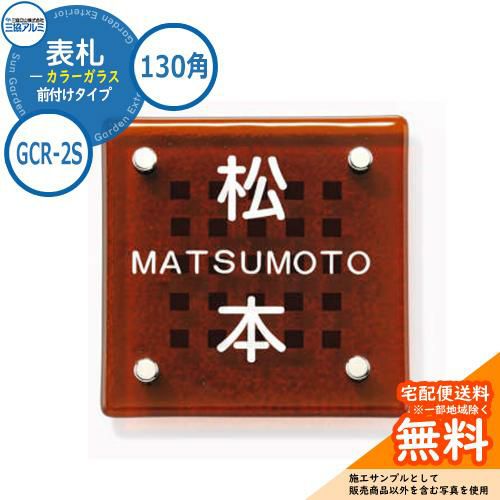 表札 ガラス おしゃれ カラーガラス 130角タイプ 正方形 GCR-2S 壁付け・機能ポール兼用