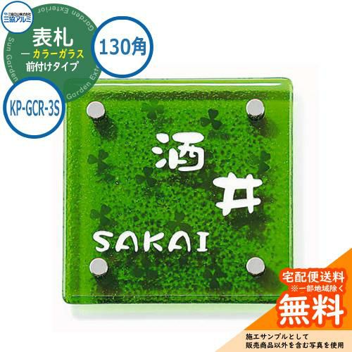 表札 ガラス おしゃれ カラーガラス 130角タイプ 正方形 KP-GCR-3S 機能ポール専用