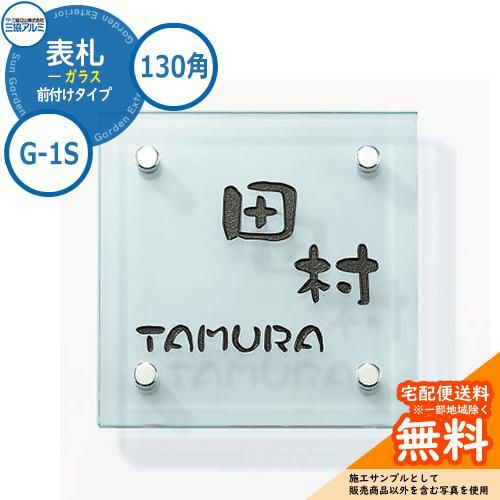 表札 ガラス おしゃれ ガラス 130角タイプ 正方形 G-1S 壁付け・機能ポール兼用