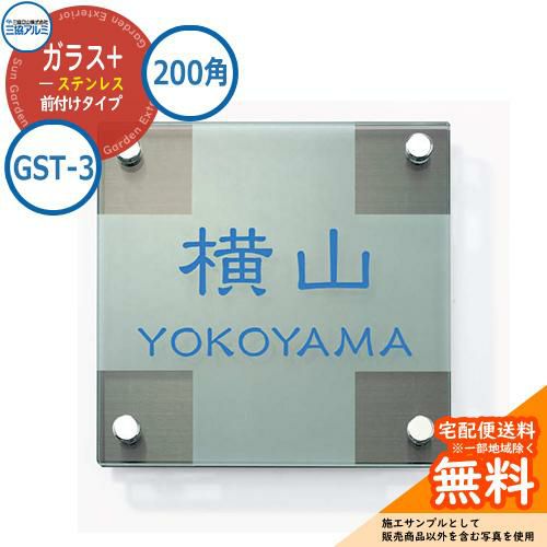 表札 ガラス おしゃれ ガラス+ステンレス 200角タイプ 正方形 GST-3 壁付け専用