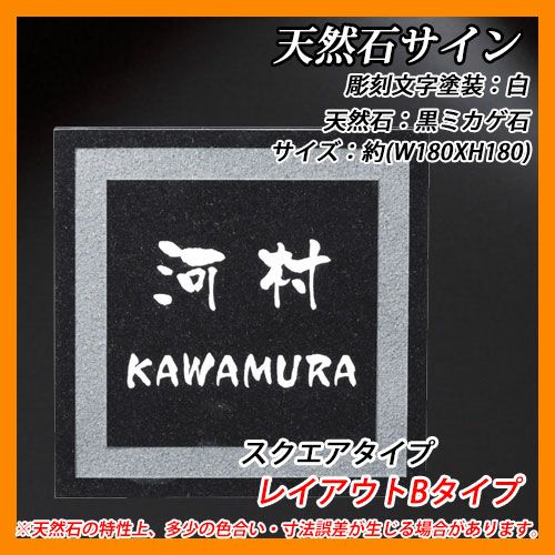 天然石表札 天然石サイン スクエアタイプ レイアウトBタイプ