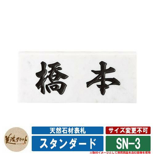 表札 おしゃれ 天然石材表札 スタンダード SN-3 文字:彫込黒色塗装