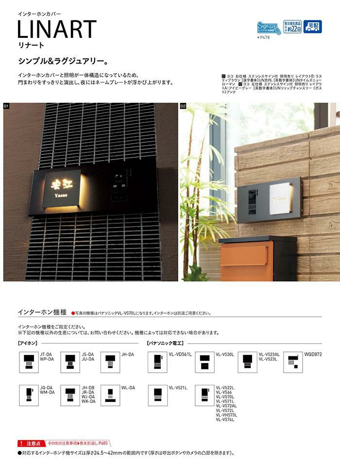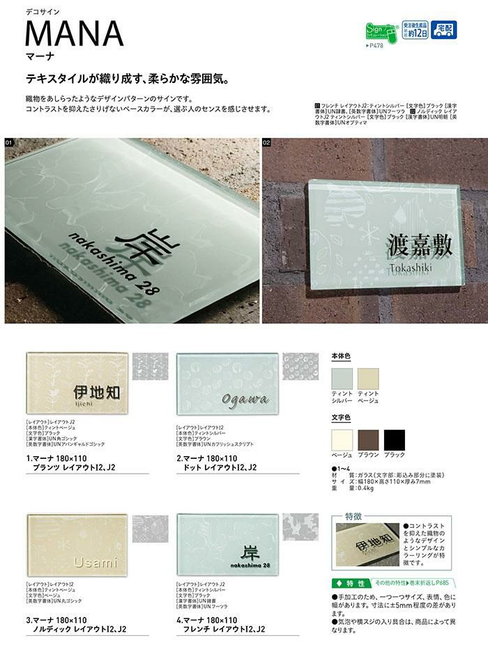 表札、看板をはじめ、郵便ポストや機能門柱などのエクステリア商品も製造する大手表札メーカーです。YKKap、三協アルミ、Panasonicの表札の製造も行っています。