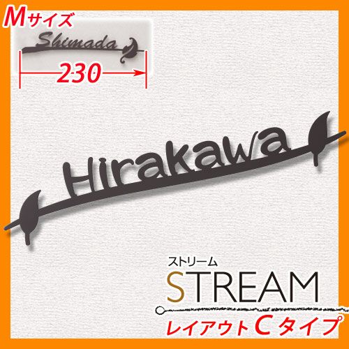 アイアン調ステンレス表札 ストリーム レイアウトCタイプ Mサイズ(230mm)