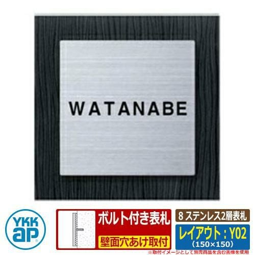セット内容 ■8 ステンレス2層表札 レイアウト:Y02 文字色:黒 サイズ:W150×H150×t8mm 品番:KYLW-▲-Y02□