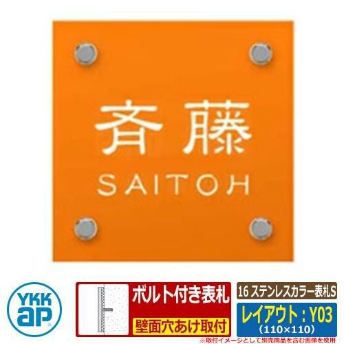 セット内容 ■16 ステンレスカラー表札S レイアウト:Y03 サイズ:W110×H110×t2mm 品番:KYMC3-▲-Y03□