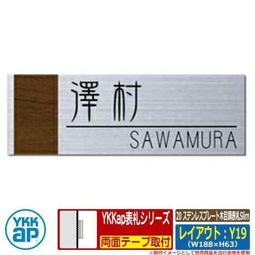 セット内容 ■20 ステンレスプレート木目調表札Slim レイアウト:Y19 文字色:黒サイズ:W188×H63×t2mm 品番:KYGRY-▲-Y19□