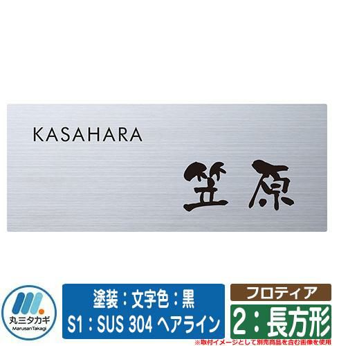 表札 おしゃれ フロティア 2:長方形 塗装:文字色:黒 S1:SUS 304 ヘアライン