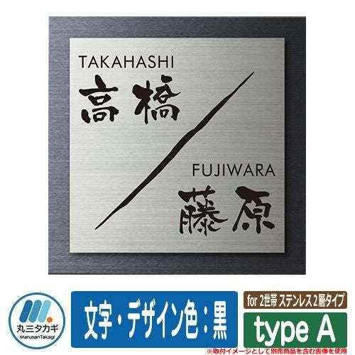 表札 おしゃれ for 2世帯 ステンレス2層タイプ type A 塗装:文字・デザイン色:黒