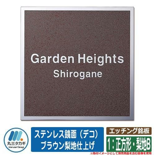 表札 おしゃれ エッチング銘板 1:正方形・梨地B ステンレス鏡面(デコ) ブラウン梨地仕上げ 塗装:不可