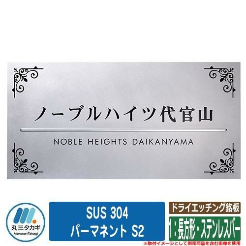 表札 おしゃれ ドライエッチング銘板 1:長方形・ステンレスバー SUS 304 パーマネント S2 塗装:文字・デザイン色:黒