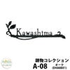 サビない材質のアルミで造ったA-08は、ロートアイアンの風合いを生かしたアルミキャストサインです。 デザインタイプはナチュラル感いっぱいの木の実を付けたオリーブ、木の王様オークの葉をアンティークに表現したオーク、花を添えるようにアプローチを飾るフルール、アンティークモダンな矢をかたどったシンプルなデザインのアロー、文字数が少ない方にお勧めのショートタイプ、アロースモールの5タイプのサインを用意しています。