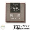 鋳物表札A-06は木調部品・鋳物の色・オーナメント・書体等を自由に組み合わせて楽しめる表札です。 木調部品はFRP(繊維強化プラスチック)製です。繊細な木目をしっかり表現。長年使っても劣化しません。 木調部なしのタイプもご用意しています。