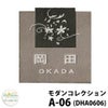 鋳物表札A-06は木調部品・鋳物の色・オーナメント・書体等を自由に組み合わせて楽しめる表札です。 木調部品はFRP(繊維強化プラスチック)製です。繊細な木目をしっかり表現。長年使っても劣化しません。 木調部なしのタイプもご用意しています。