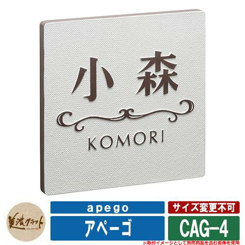 表札 おしゃれ アペーゴ apego ベース前面:半ツヤオフホワイト塗装 CAG-4 文字&模様:(約1mm)こげ茶色塗装