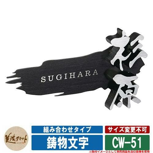 表札 おしゃれ 鋳物文字 IMONO-MOJI 組み合わせタイプ CW-51 漢字:CW-3 70 角 英字:ヘアライン