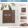 ステンレス銘板・アクリル銘板・切り文字(ステンレス)銘板・ステンレス+木調(フレームタイプ)銘板・ステンレス+木調銘板・ステンレス+ガラス・ステンレス+ガラス(ステンレス埋め込みタイプ)銘板・ステンレス+瓦(いぶし瓦)銘板・ステンレス+御影石(ステンレス埋め込みタイプ)銘板・ステンレス+黒御影石銘板・ステンレス+アクリル銘板・ステンレス+アルミ銘板・タイル(シャビータイプ)・タイル(ラフエッジタイプ)銘板・タイル+ステンレス銘板・陶器銘板・清水焼銘板・九谷焼銘板・信楽焼銘板・カラーガラス銘板・ガラス銘板・ガラス+木調・ガラス+ステンレス銘板・ガラス+御影石銘板・アクリル+木調銘板・アクリル銘板・人工大理石(樹脂)銘板・黒御影石銘板 等