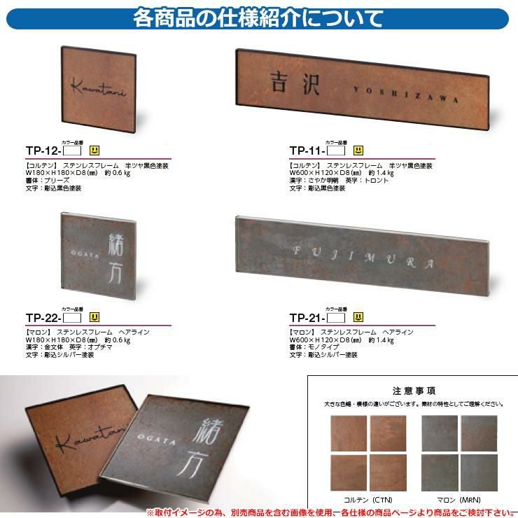表札、看板をはじめ、郵便ポストや機能門柱などのエクステリア商品も製造する大手表札メーカーです。YKKap、三協アルミ、Panasonicの表札の製造も行っています。