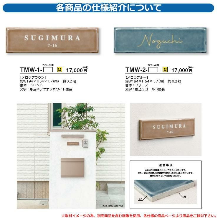 サンプル画像:Type02【107×60mm】 タイル表札 国産タイル 貼り付け 簡単 取り付け 二世帯 戸建 門柱 機能門柱 おしゃれ ネームプレート オーダーメイド ローマ字 漢字 筆記体