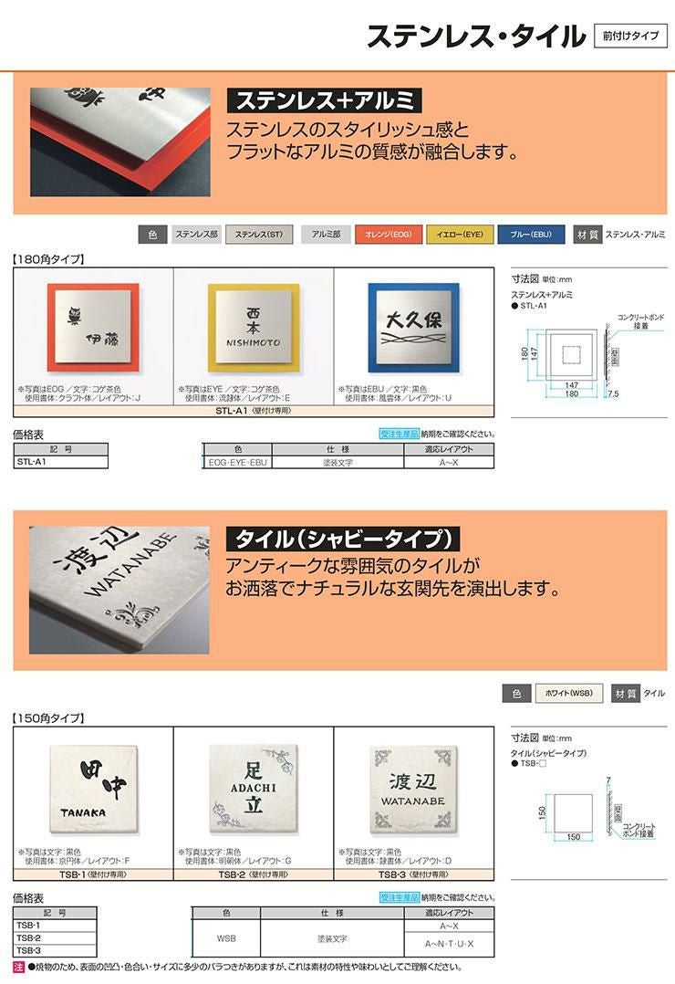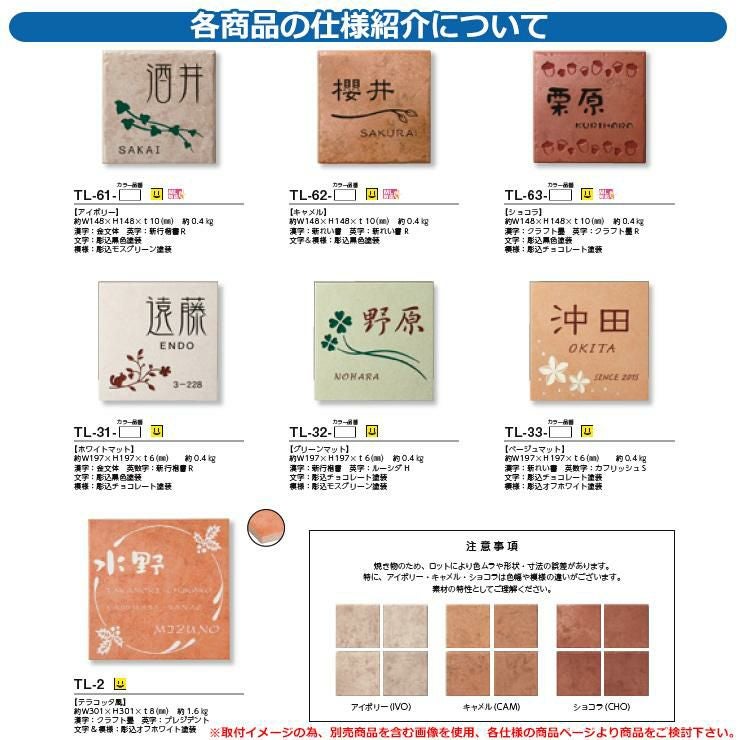 タイル表札 国産タイル 貼り付け 簡単 取り付け 二世帯 戸建 門柱 機能門柱 おしゃれ ネームプレート オーダーメイド ローマ字 漢字 筆記体