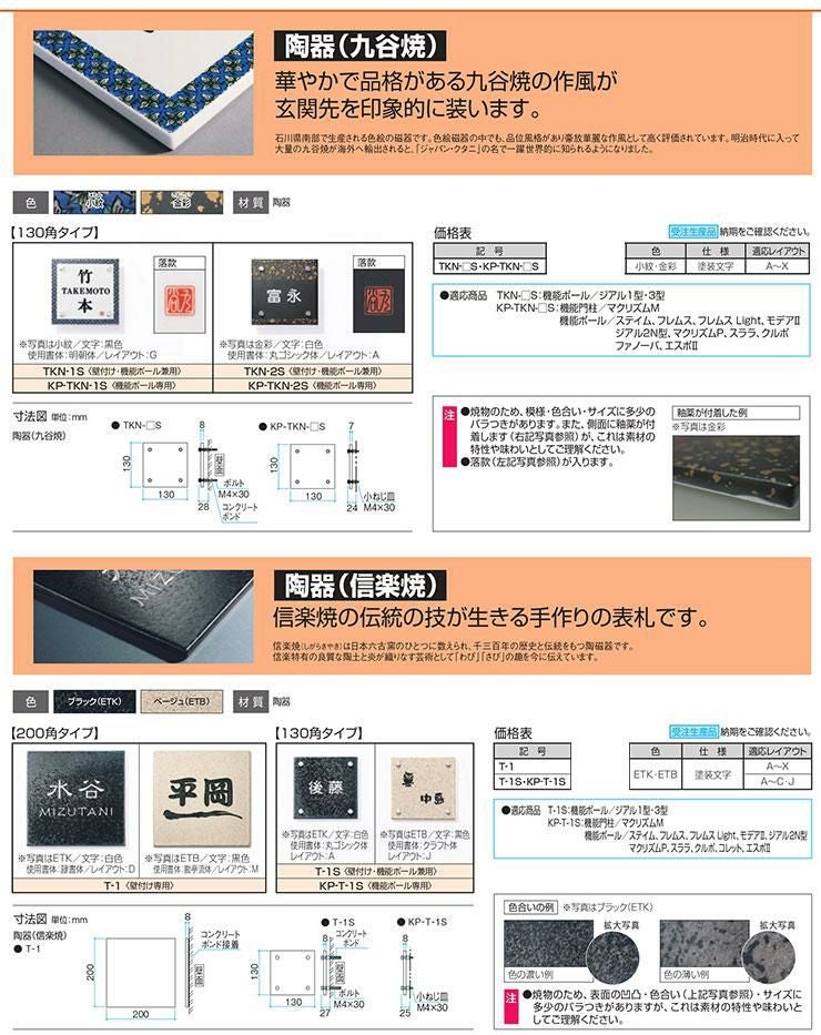 表札メーカーのパイオニアとして「表札は大切な家の顔。」を理念に多種多様な表札を製造している大手表札メーカーです。表札めーかーですが、表札だけではなくポストや機能門柱も人気です。