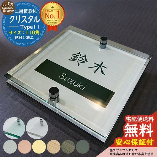 二層板表札 クリスタル Type11:2点ビス仕様【サイズ:110×110mm】