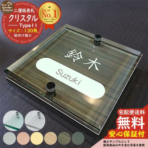 二層板表札 クリスタル Type11:2点ビス仕様【サイズ:130×130mm】