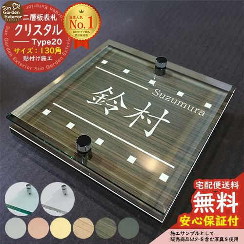 二層板表札 クリスタル Type20:2点ビス仕様【サイズ:130×130mm】