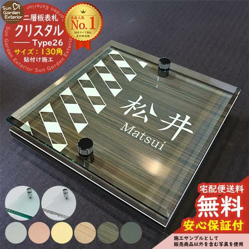 二層板表札 クリスタル Type26:2点ビス仕様【サイズ:130×130mm】