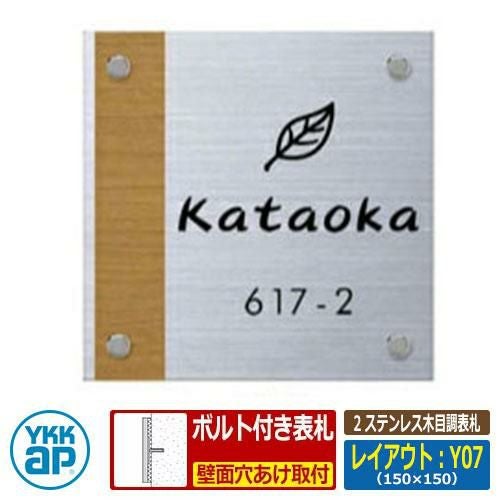 表札 ステンレス 2 ステンレス木目調表札 レイアウト:Y07 文字色:黒 サイズ:W150×H150×t2mm
