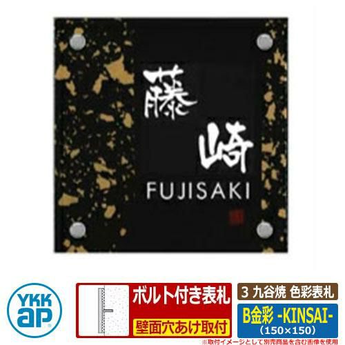 表札 タイル おしゃれ 3 九谷焼 色彩表札 B金彩 -KINSAI- 文字色:白 サイズ:W150×H150×t8mm
