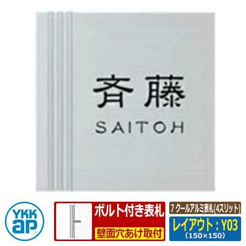 表札 おしゃれ アルミ 7 クールアルミ表札(4スリット) レイアウト:Y03 文字色:黒 サイズ:W150×H150×t10mm