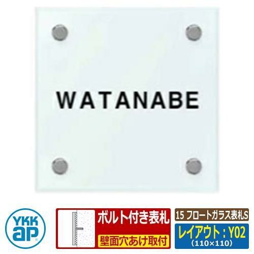 セット内容 ■15 フロートガラス表札S レイアウト:Y02 文字色:黒サイズ:W110×H110×t10mm 品番:KYG2-Y02□