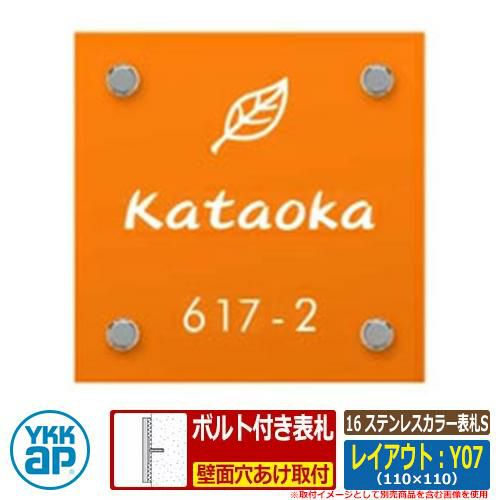セット内容 ■16 ステンレスカラー表札S レイアウト:Y07 サイズ:W110×H110×t2mm 品番:KYMC3-▲-Y07□