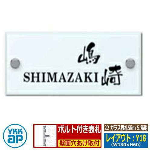 セット内容 ■22 ガラス表札Slim 5.無地 レイアウト:Y18 文字色:黒サイズ:W130×H60×t10mm 品番:KYG3-5-Y18