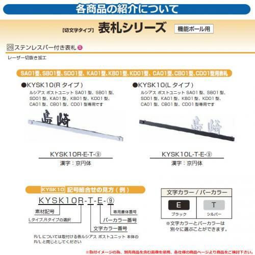 セット内容 ■26 ステンレスバー付き表札 KYSK10 Rタイプ SA01型、SB01型、SD01型、KA01型、KB01型、KD01型、CA01型、CB01型、CD01型用 品番:KYSK10R-[1]-[2]-[3]