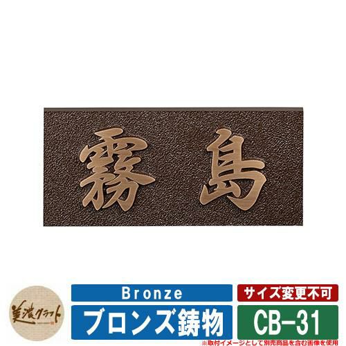 表札 おしゃれ ブロンズ鋳物 CB-31 文字:(約3 mm)銅ブロンズHL ベース:梨地銅ブロンズ塗装