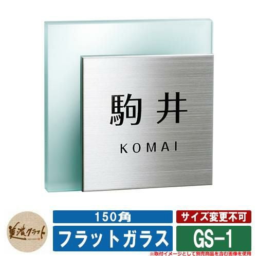 表札 おしゃれ フラットガラス 150角 GS-1 文字:黒色塗装