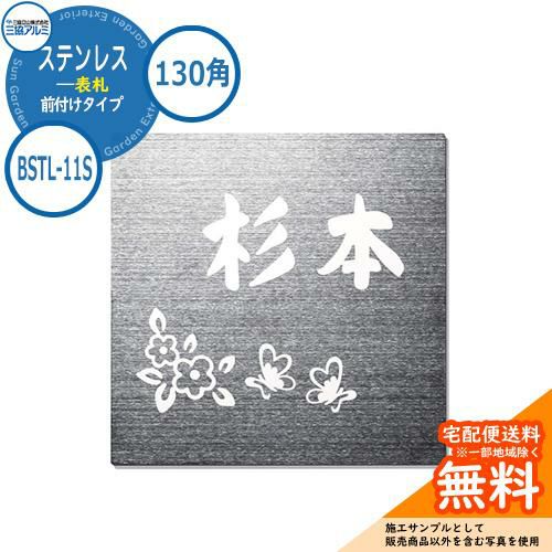 表札 ステンレス おしゃれ ステンレス 表札 130角タイプ 正方形 BSTL-11S 壁付け・機能ポール兼用