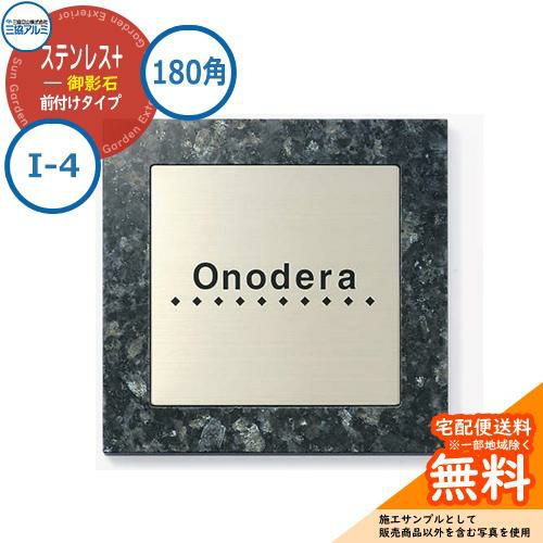表札 ステンレス おしゃれ ステンレス+御影石 180角タイプ 正方形 (ステンレス埋め込みタイプ) I-4 壁付け専用 ブルーパール(EIB)