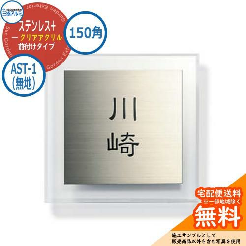 表札 ステンレス おしゃれ ステンレス+クリアアクリル 150角タイプ 正方形 AST-1(無地) 壁付け専用