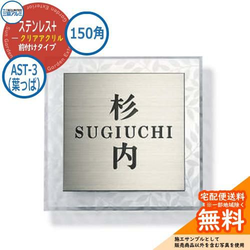 表札 ステンレス おしゃれ ステンレス+クリアアクリル 150角タイプ 正方形 AST-3(葉っぱ) 壁付け専用
