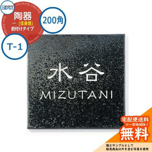 表札 タイル おしゃれ 陶器 (信楽焼) 200角タイプ 正方形 T-1 壁付け専用 ブラック(ETK)