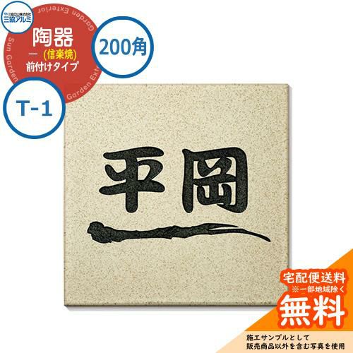 表札 タイル おしゃれ 陶器 (信楽焼) 200角タイプ 正方形 T-1 壁付け専用 ベージュ(ETB)