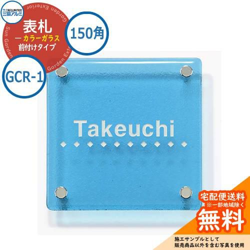 表札 ガラス おしゃれ カラーガラス 150角タイプ 正方形 GCR-1 壁付け専用