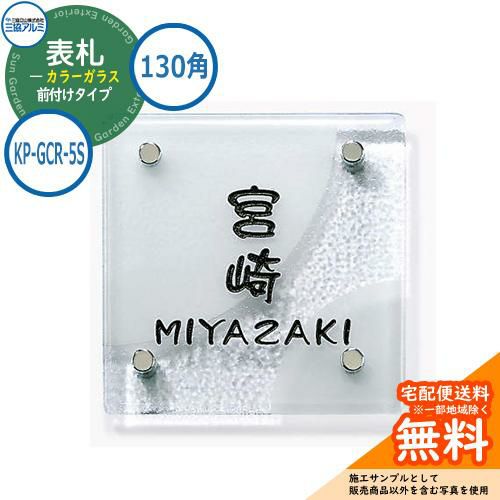 表札 ガラス おしゃれ カラーガラス 130角タイプ 正方形 KP-GCR-5S 機能ポール専用
