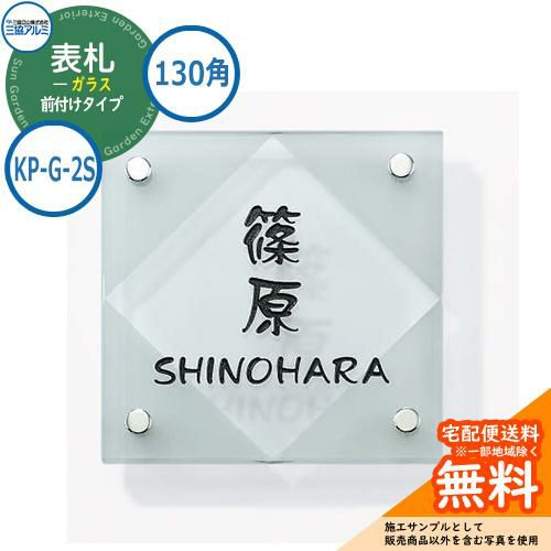 表札 ガラス おしゃれ ガラス 130角タイプ 正方形 KP-G-2S 機能ポール専用